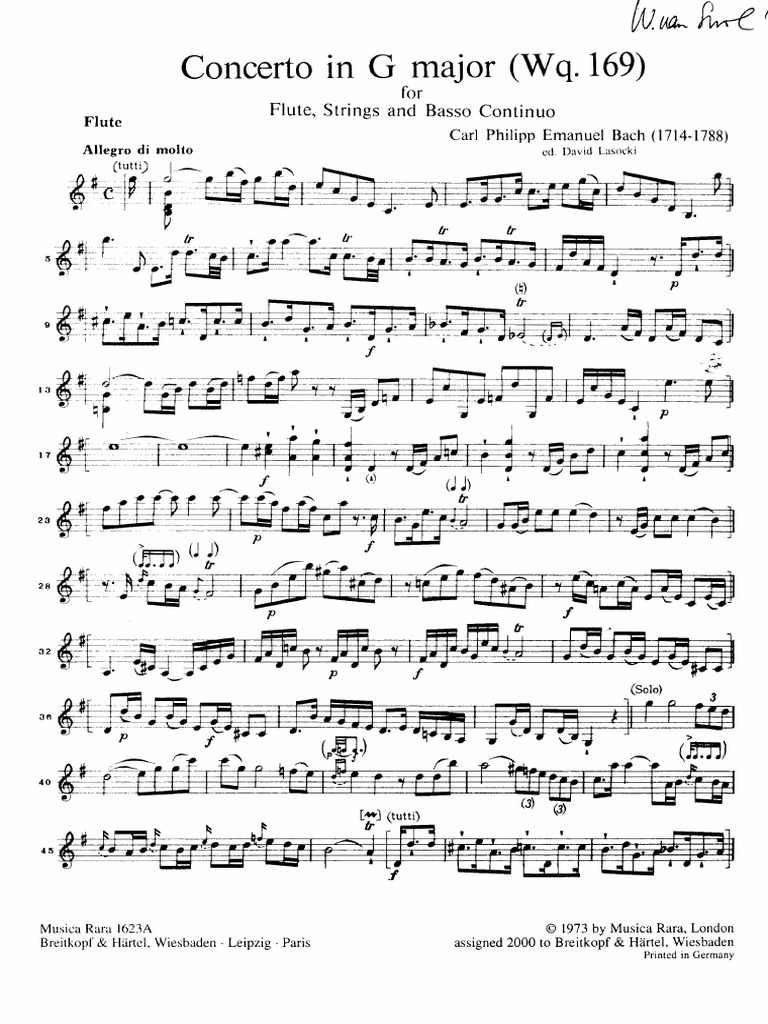 Carl Philipp Emanuel Bach - Flute Concerto In G Major Wq. 169 I. Allegro Di Molto - Flute Concerto In A Minor H 431 Bach Carl Philipp Emanuel Imslp Free Sheet Music Pdf Download : Concerto for flute, strings and basso continuo in g major, wq 169:. 'this is a recording to treasure and it is above all the sombrely meditative largo con sordini of the a major concerto that stays in my memory' (gramo. Listen to james galway flute concerto in g major, h.445, wq. Largo — carl philipp emanuel bach chamber orchestra, hartmut haenchen, eckart haupt. Toccata in e minor, bwv 914. Carl philipp emanuel bach concerto for flute h 445 allegro di molto james galway flute.